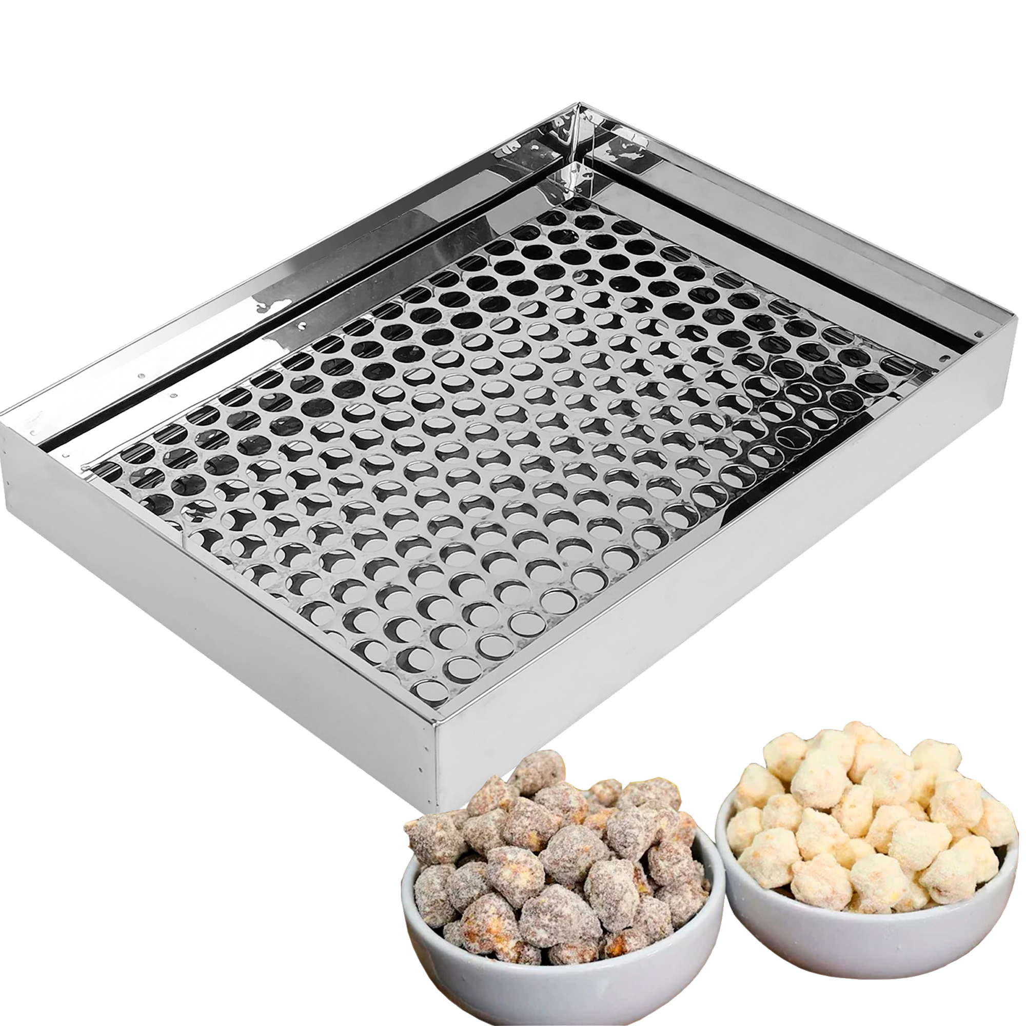 A bandeja de seleção de pipoca Gourmet é muito utilizado para arredondar a pipopa e separar dos milhos não estourados (carunchos), dando o formato de bolinhas Gourmet.